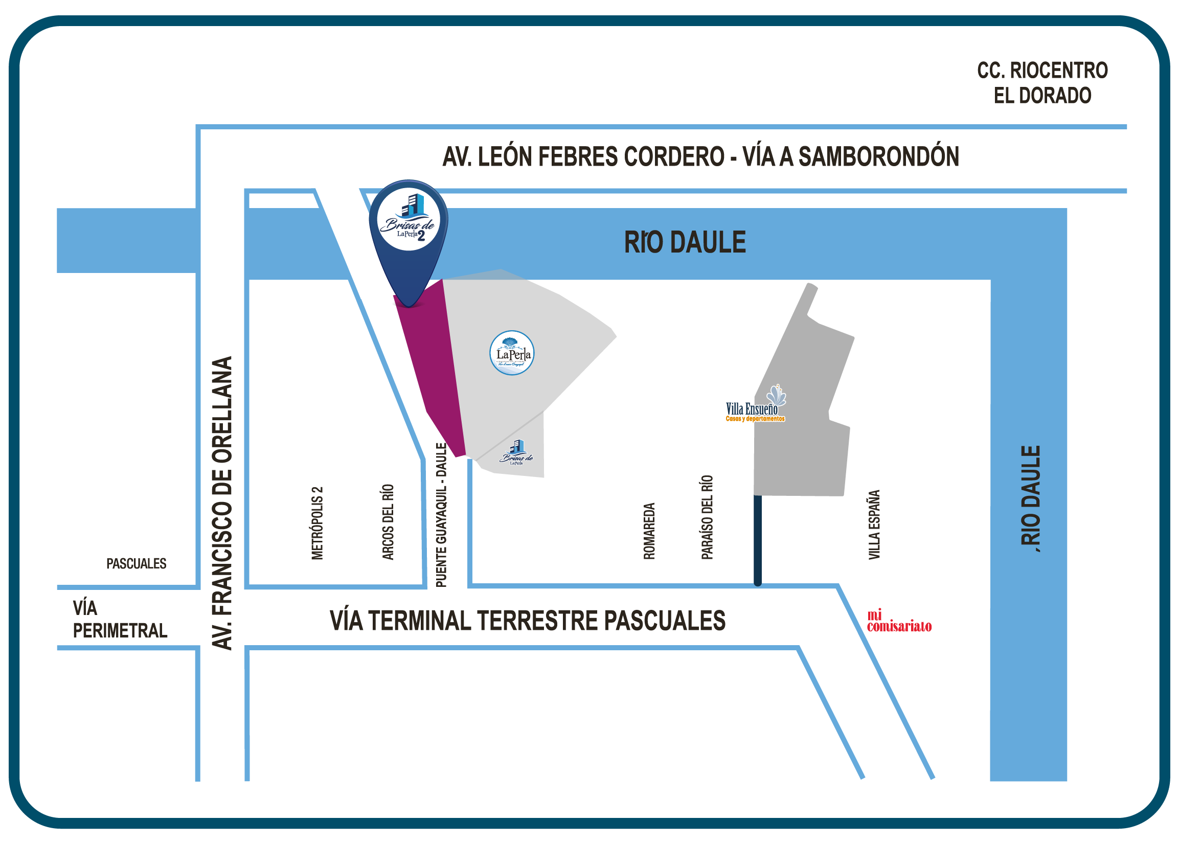 Estamos ubicados en la autopista Narcisa de Jesús, al pie del puente que une Guayaquil con Daule y Samborondón.